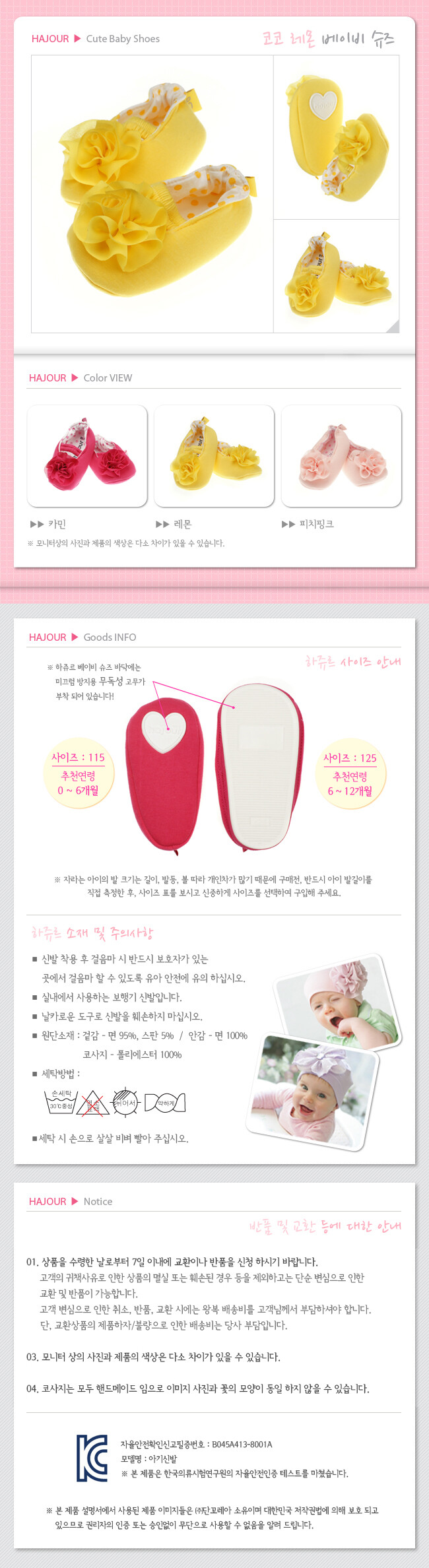 하쥬르 백일 돌 아기 유아 걸음마 보행기 신발 슈즈 드레스 - 코코(레몬)