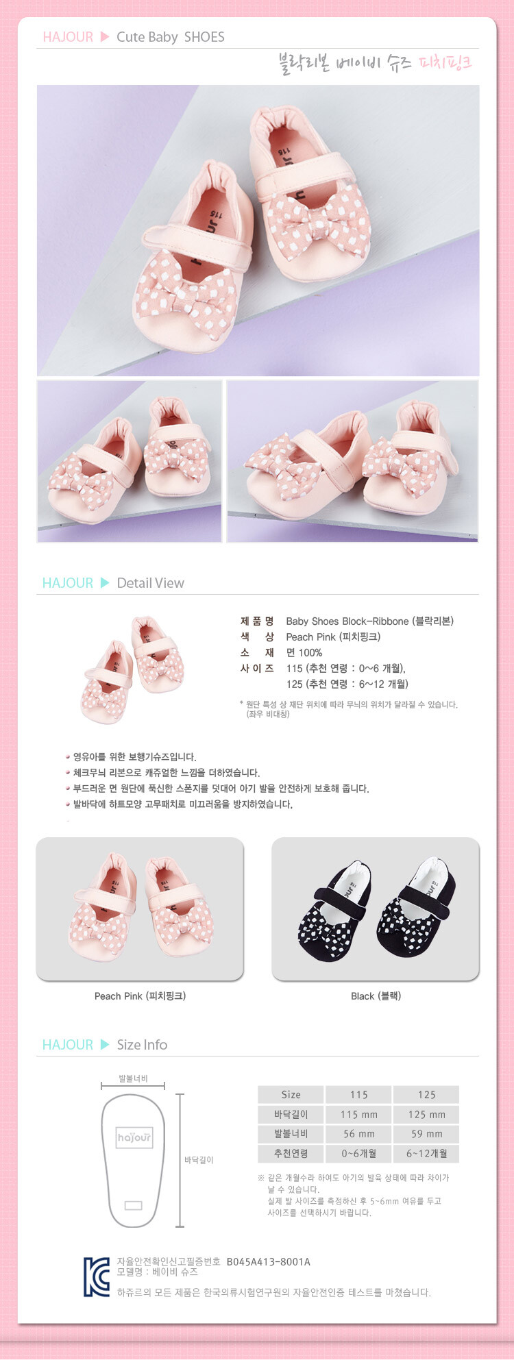 하쥬르 백일 돌 아기 유아 걸음마 보행기 신발 슈즈 드레스 - 블락리본(피치핑크)
