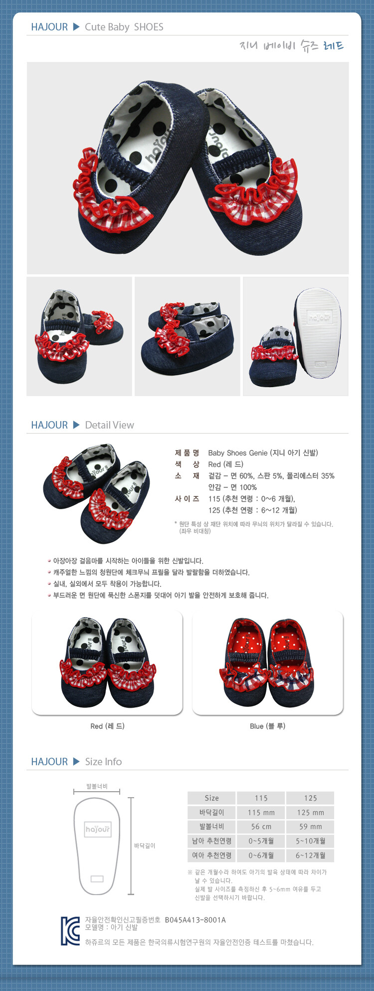 하쥬르 백일 돌 아기 유아 걸음마 보행기 신발 슈즈 드레스 - 지니(레드)