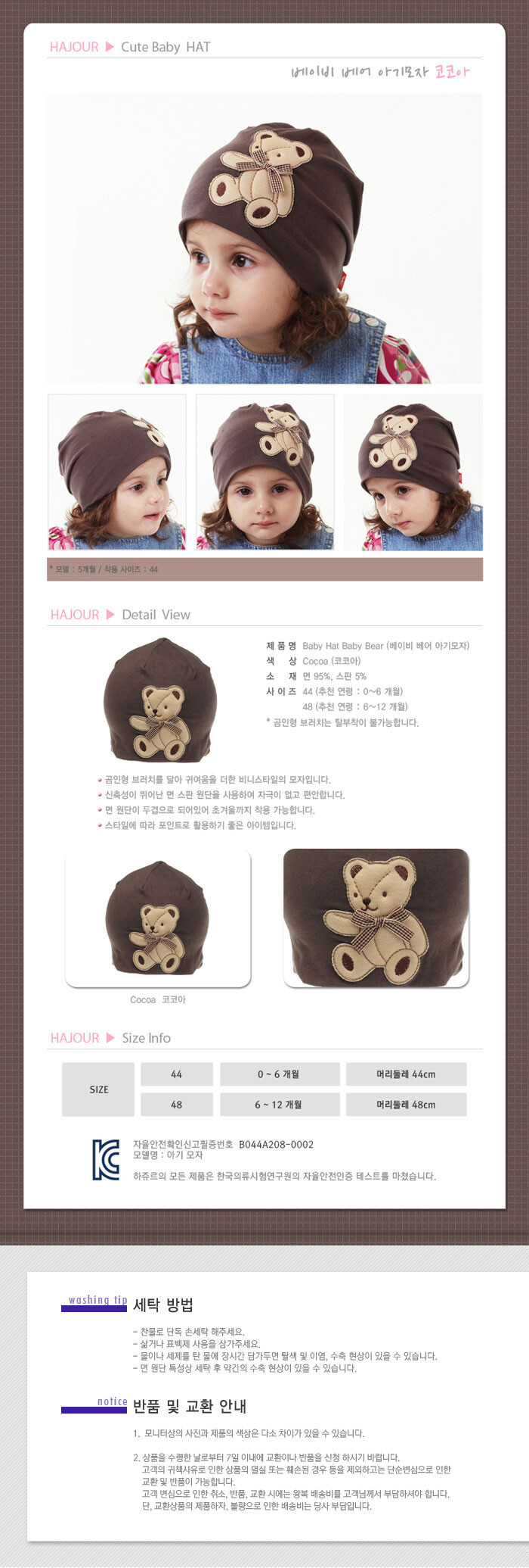 하쥬르 아기 모자 - 베이비 베어 (코코아)